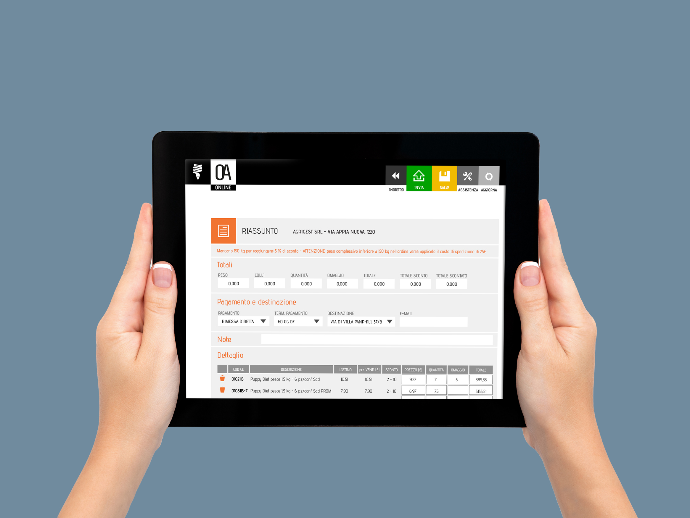 Studio nuova grafica per l'applicazione Ordini Agenti di Trizeta